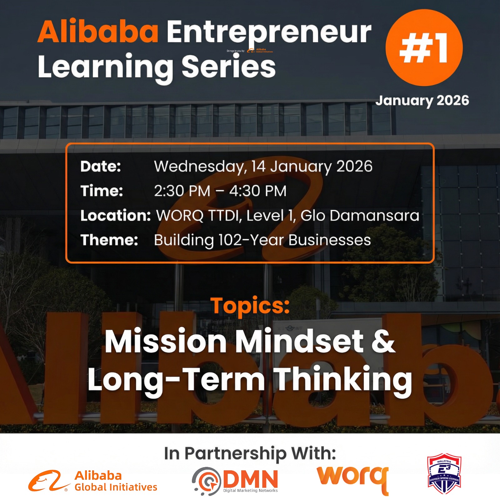 The Alibaba Entrepreneur Learning Series kicks off with its first session, Building Businesses That Last: The Entrepreneur Mindset. Designed for entrepreneurs, business owners, and aspiring founders, this session explores the mindset behind long-term, sustainable entrepreneurship — focusing on purpose-driven decision-making and growth beyond short-term survival.